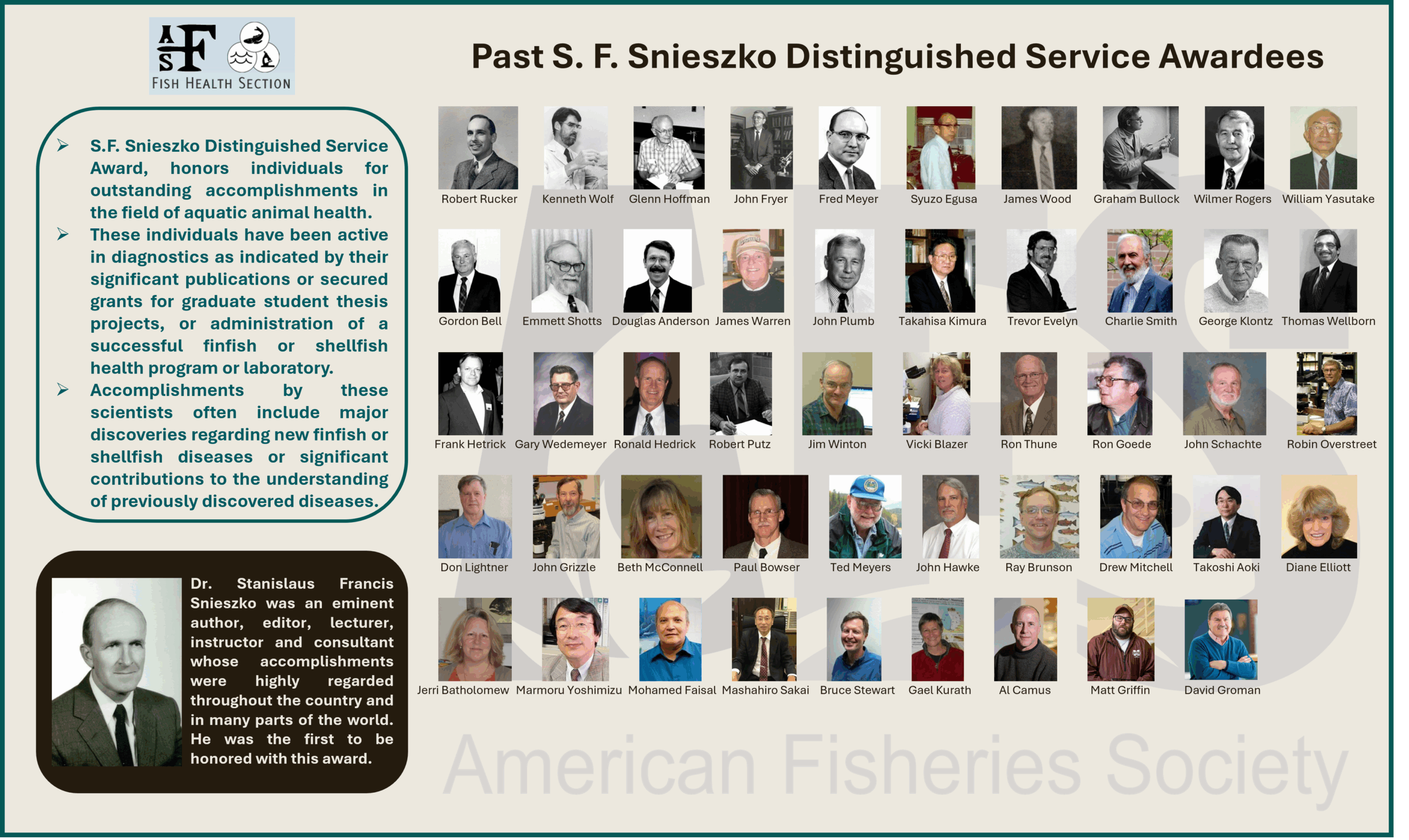 Below is a list of the past recipients of the S.F. Snieszko Distinguished Service Award.