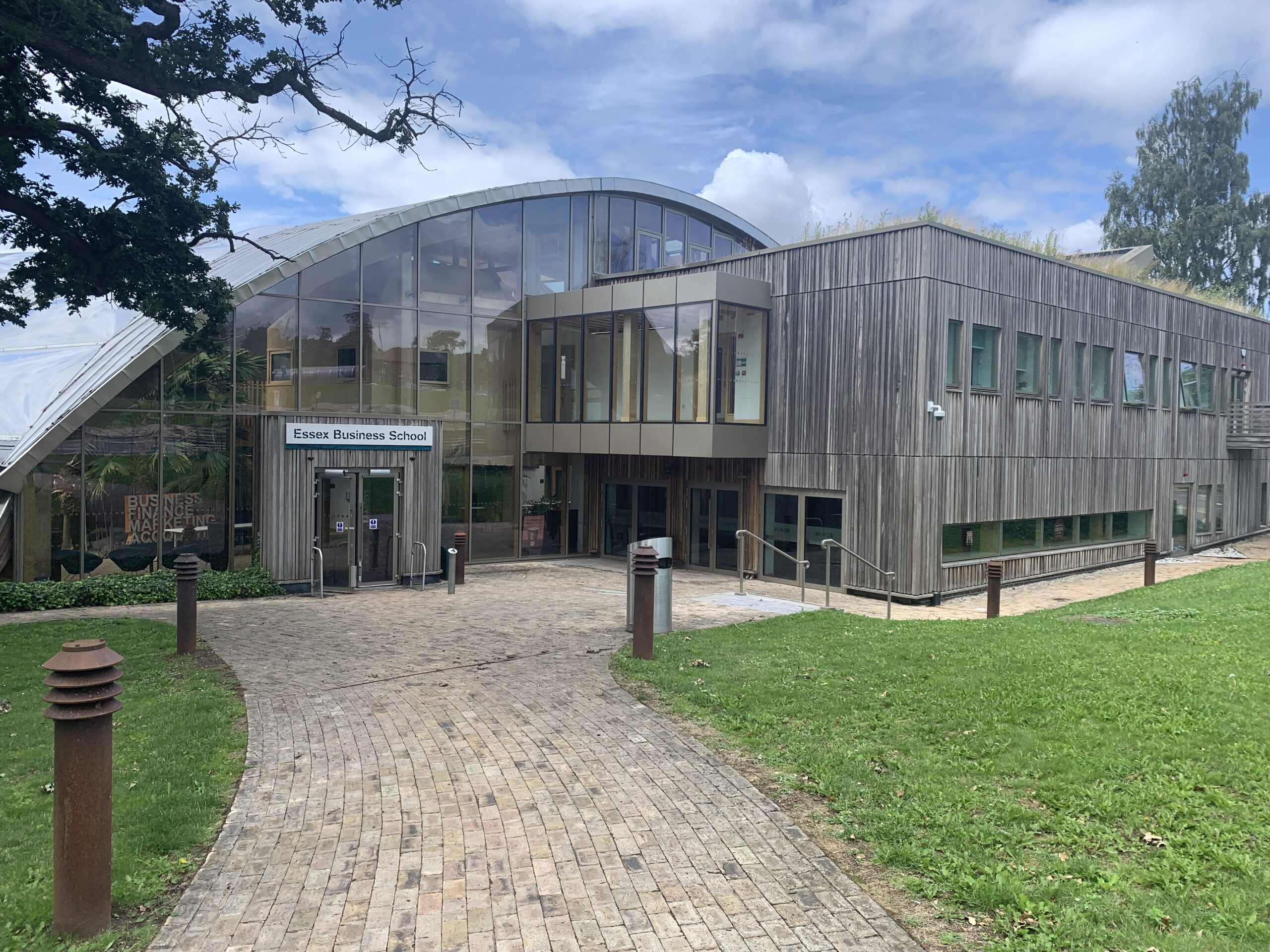 Following a smooth day of travel, I made my way to the University of Essex in Colchester. I enjoyed exploring around the town and campus, which was beautiful despite the drizzle. I got a sneak peek at the Essex Business School building where we would have most of our presentations, a striking zero-carbon building with gardens inside and a living roof. My conference experience began with a riveting excursion first thing Monday morning with Dr. Tom Cameron, where we explored the Essex Wildlife Trust’s Abbots Hall saltmarsh and discussed their use as fish nurseries and the oyster industry in the local area. It is incredible how different the marsh is from what I am used to on the east coast of the US! Having an outing like this early in the meeting was a great way for a newcomer like me to make easy connections (thanks Matt Hatfield).