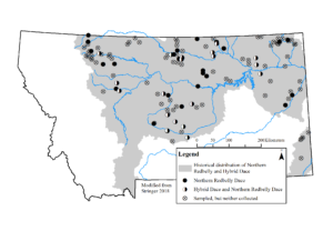 Figure 1. Collections of Northern Redbelly Dace and hybrid dace from their historical distribution in a 2015–2017 study of their current status and distributions in Montana (adapted from Stringer 2018).