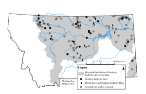Figure 1. Collections of hybrid dace and Northern Redbelly Dace from their historical distribution in a 2015–2017 study of their current status and distributions in Montana (adapted from Stringer 2018).